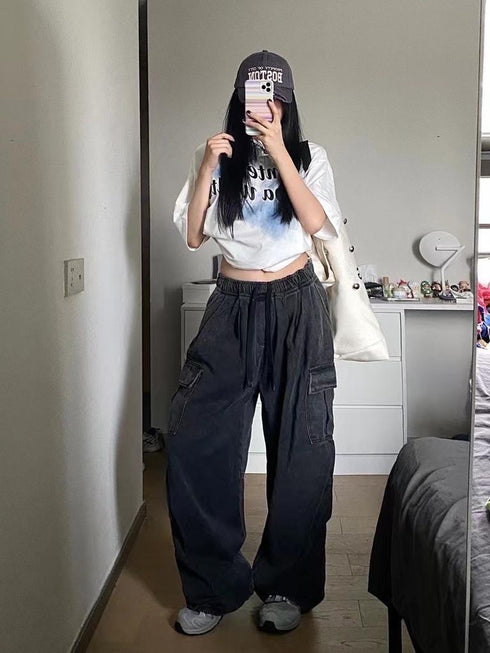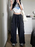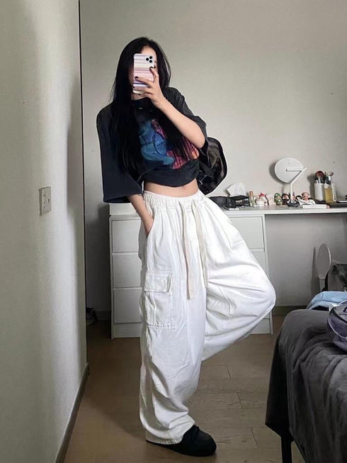 Baggy Pleated Drawstring Multi-Pocket Flare Cargo Pants