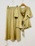 Cowl Neckline Short Sleeves Tie Tops With Skirts Sets