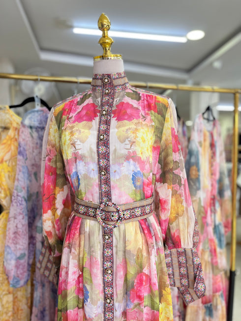 - Floral Button Down Long Maxi Dress